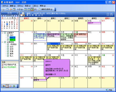 4、查看:您可以按月、周给天来查看日程安排。友情强档的颜色标识系统可以让您对您的日程安排情况一目了然。另外,友情强档还提供时间总体情况分配图,让您一下就找出您的空闲时间。